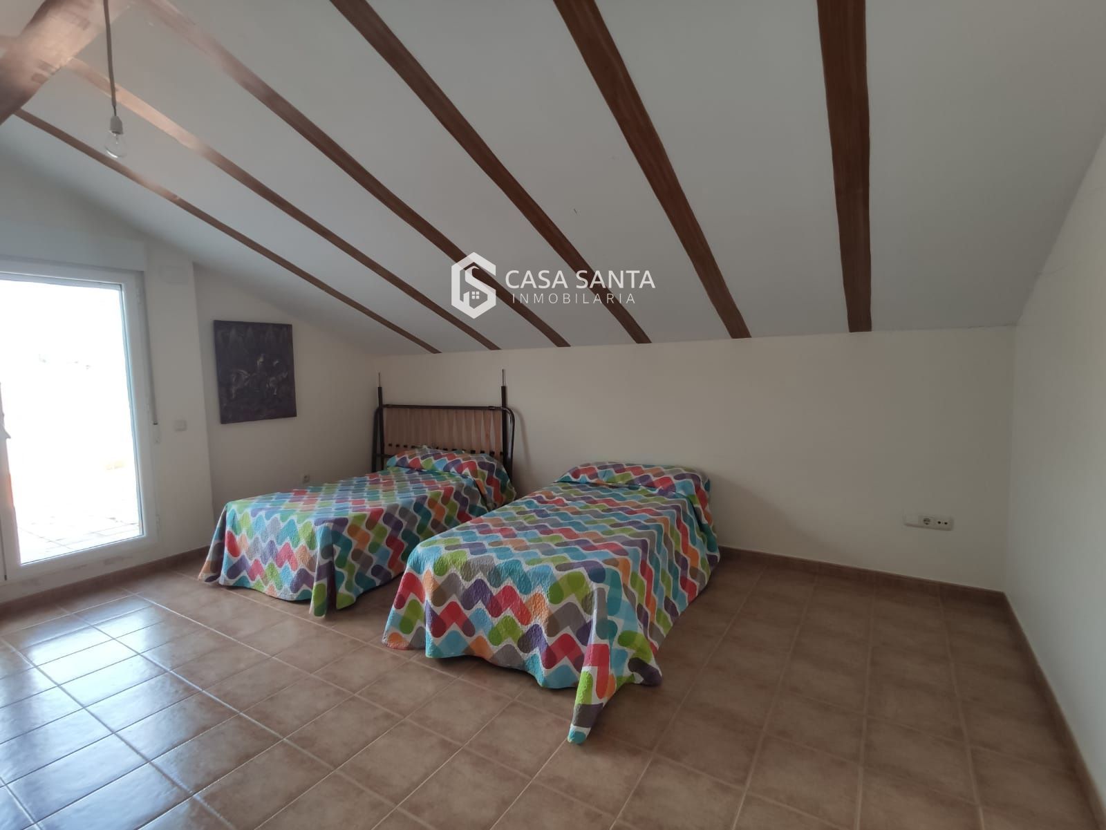 La vivienda, construida en 2004 y en muy buen estado de conservación, cuenta con 170 m² construidos, distribuidos de manera funcional y cómoda. Dispone de cuatro dormitorios amplios, dos baños completos, una cocina totalmente equipada y un salón-comedor espacioso con chimenea, que aporta calidez y un ambiente acogedor durante los meses de invierno. Como valor añadido, la propiedad cuenta con terraza, balcón y una buhardilla polivalente, un espacio versátil que puede destinarse a dormitorio adicional, despacho, sala de juegos o zona de ocio.