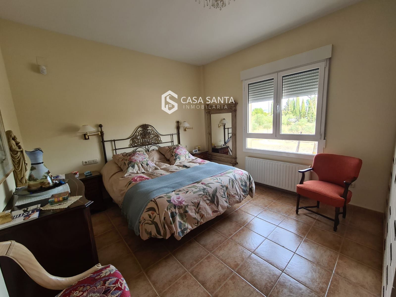 Chalet en parcela totalmente cercada de 4.895 m² a 5 minutos de Yecla, con 188 m² construidos, 2 dormitorios (con 1 dormitorio adicional en construcción), 2 baños (uno con jacuzzi para 6 personas), suelo radiante, aire acondicionado, chimenea, ventanas climalit oscilobatientes y persianas motorizadas. Amueblado según acuerdo.