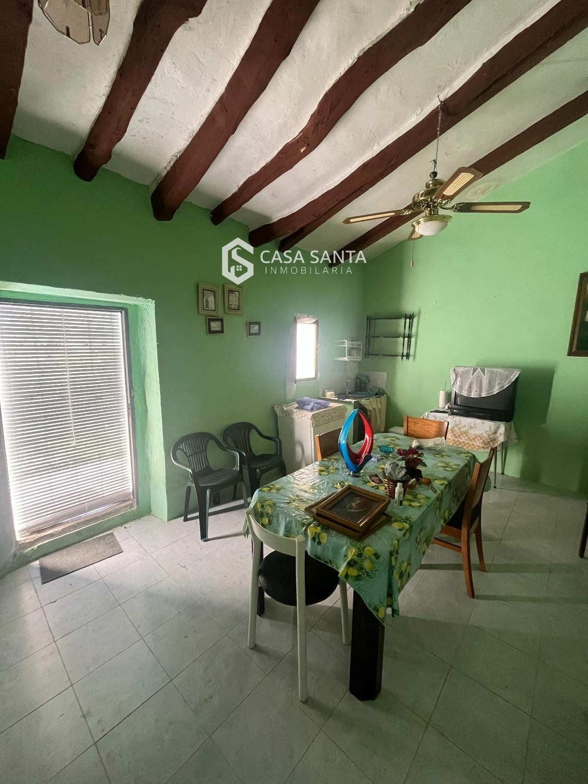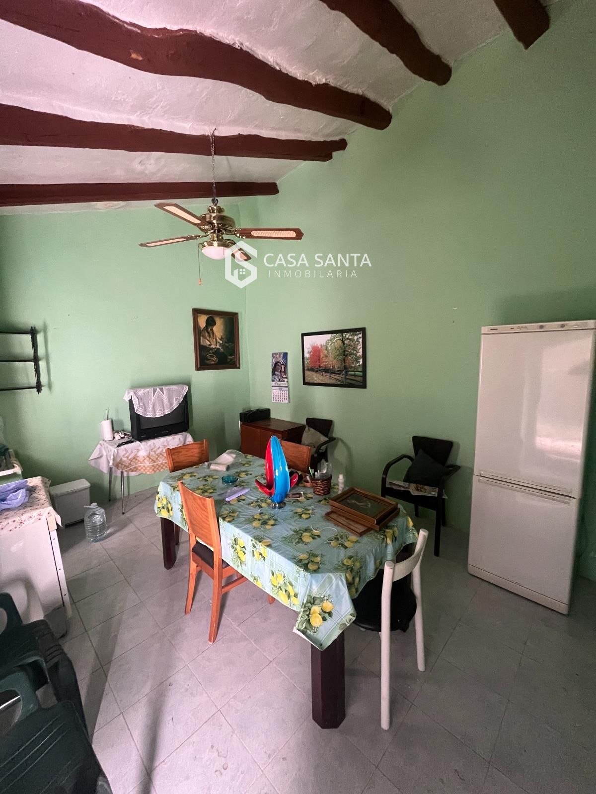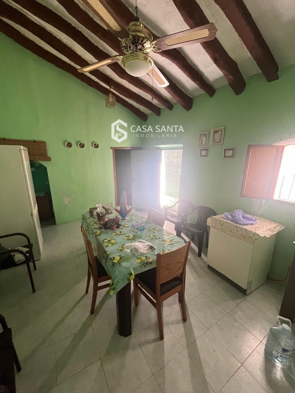 La propiedad cuenta con una vivienda sencilla pero funcional, compuesta por una cocina-comedor en planta baja que actúa como espacio principal de la casa, y dos habitaciones ubicadas en la planta superior. El inmueble ha sido recientemente mejorado, ya que el techo ha sido reformado y toda la vivienda ha sido pintada, lo que permite disponer de una base en buen estado para su uso inmediato o para futuras mejoras según las necesidades del comprador.