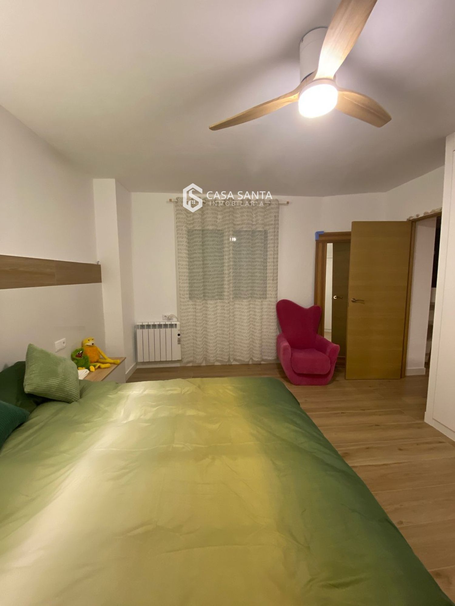 La vivienda dispone de tres habitaciones, con dimensiones cómodas que permiten adaptarlas a diferentes necesidades: dormitorios familiares, habitación para invitados o incluso despacho para teletrabajo. Los armarios empotrados facilitan el almacenamiento y ayudan a mantener una distribución práctica y ordenada dentro del hogar.